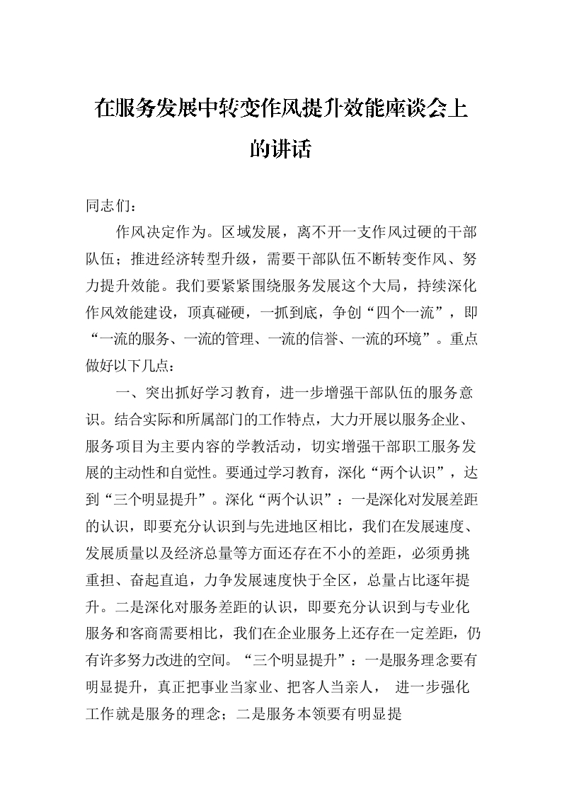 / 在服务发展中转变作风提升效能座谈会上的讲话