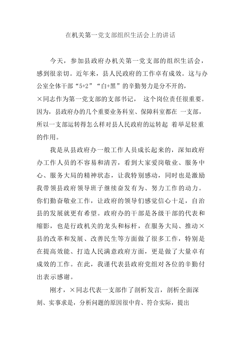 / 在机关第一党支部组织生活会上的讲话