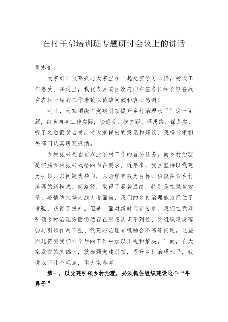 在村(社区)党组织书记暨农村基层干部乡村振兴培训示范班上的开班动员讲话