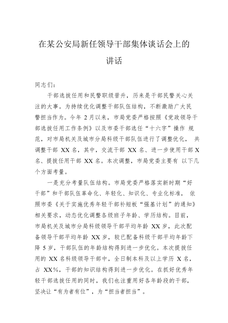 / 在某公安局新任领导干部集体谈话会上的讲话