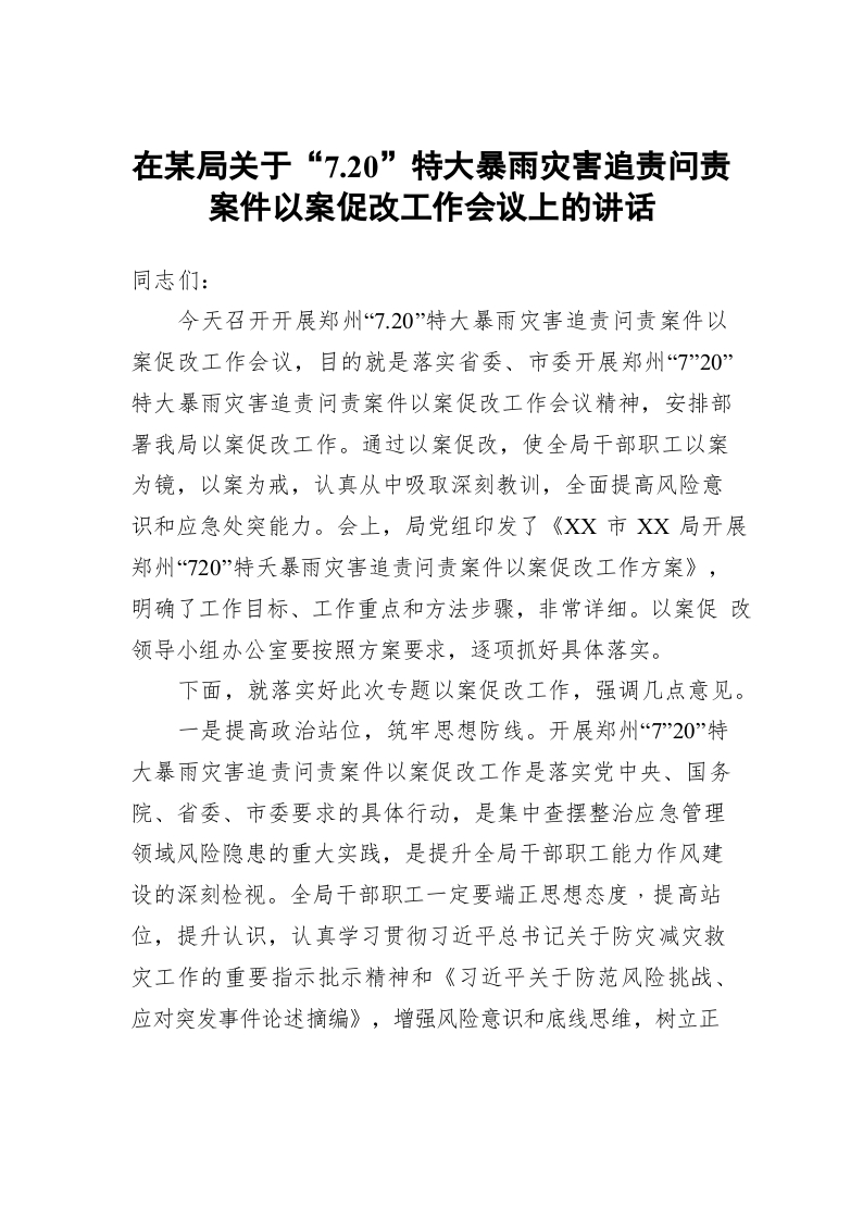 / 在某局关于“7.20”特大暴雨灾害追责问责案件以案促改工作会议上的讲话