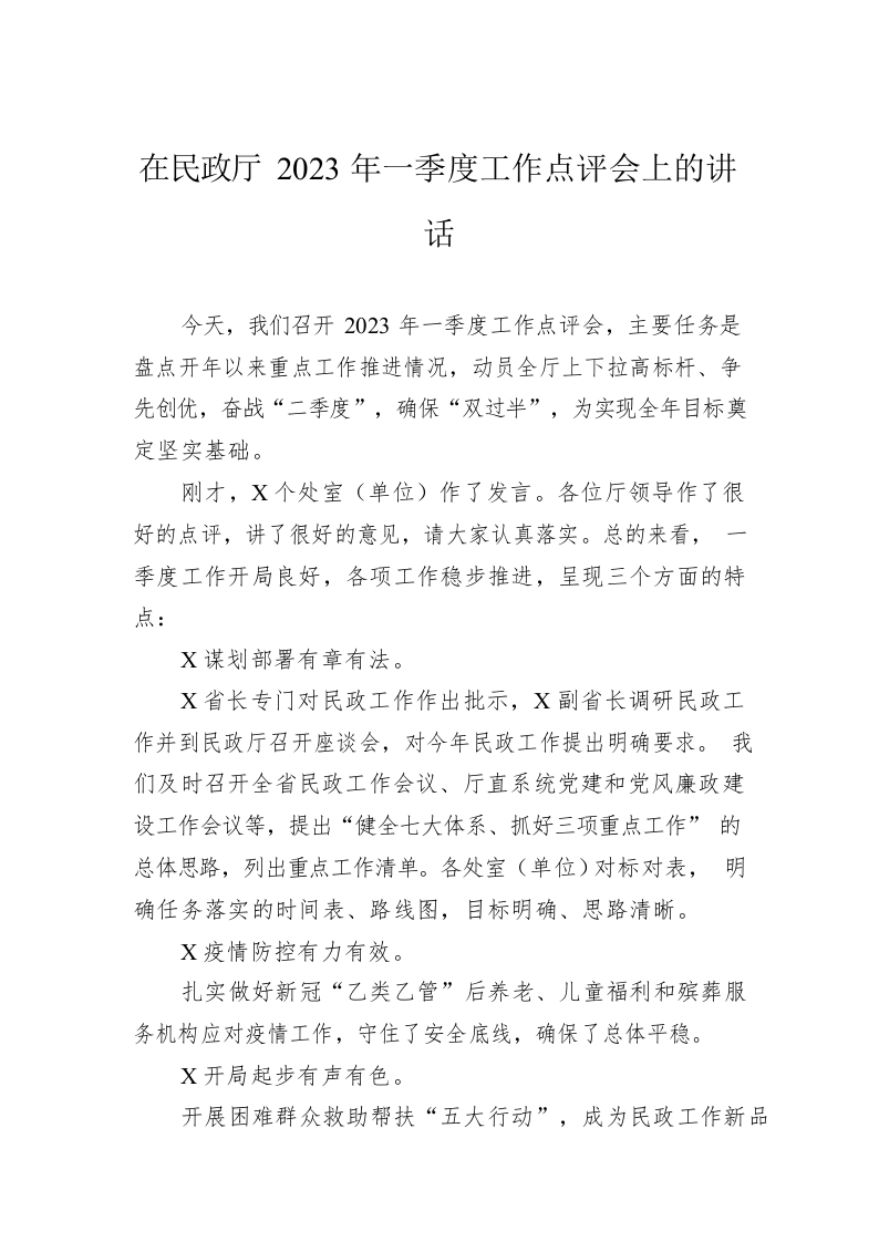 / 在民政厅2023年一季度工作点评会上的讲话