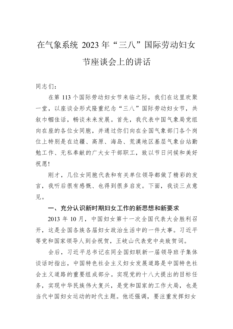 / 在气象系统2023年“三八”国际劳动妇女节座谈会上的讲话