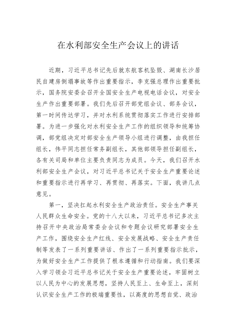 在水旱灾害防御工作领导小组全体会议上的讲话