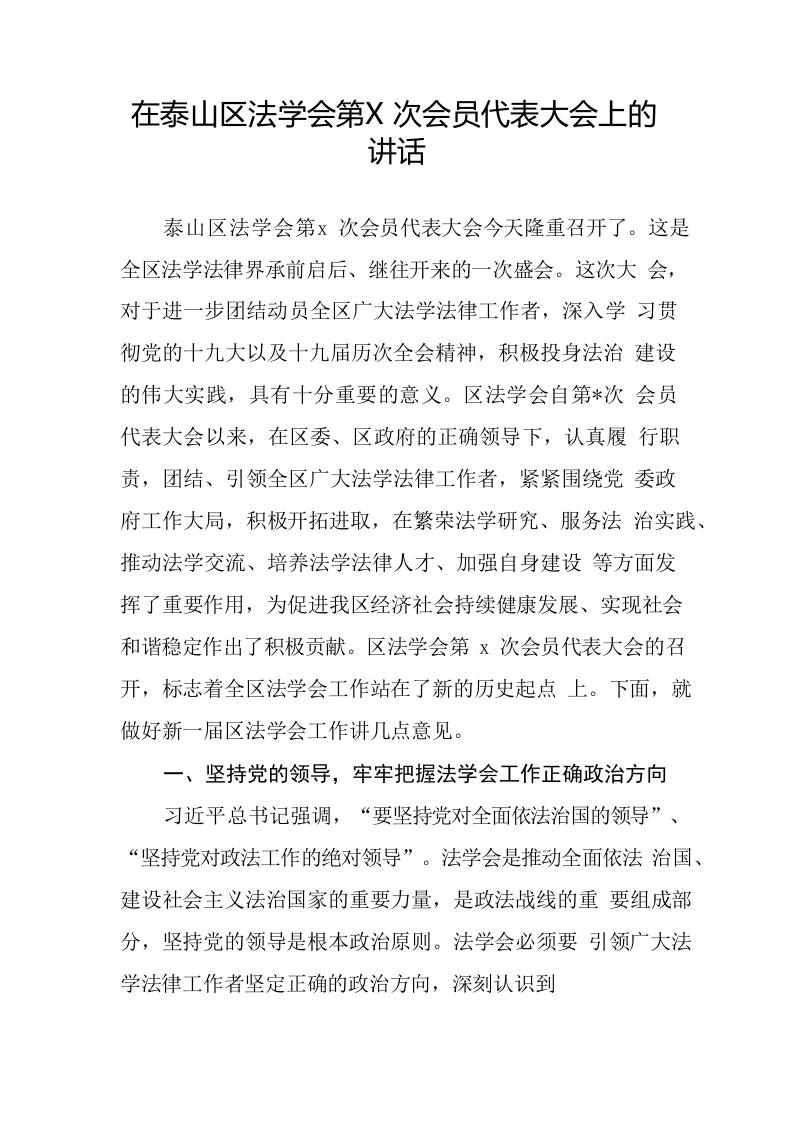 / 在泰山区法学会第X次会员代表大会上的讲话