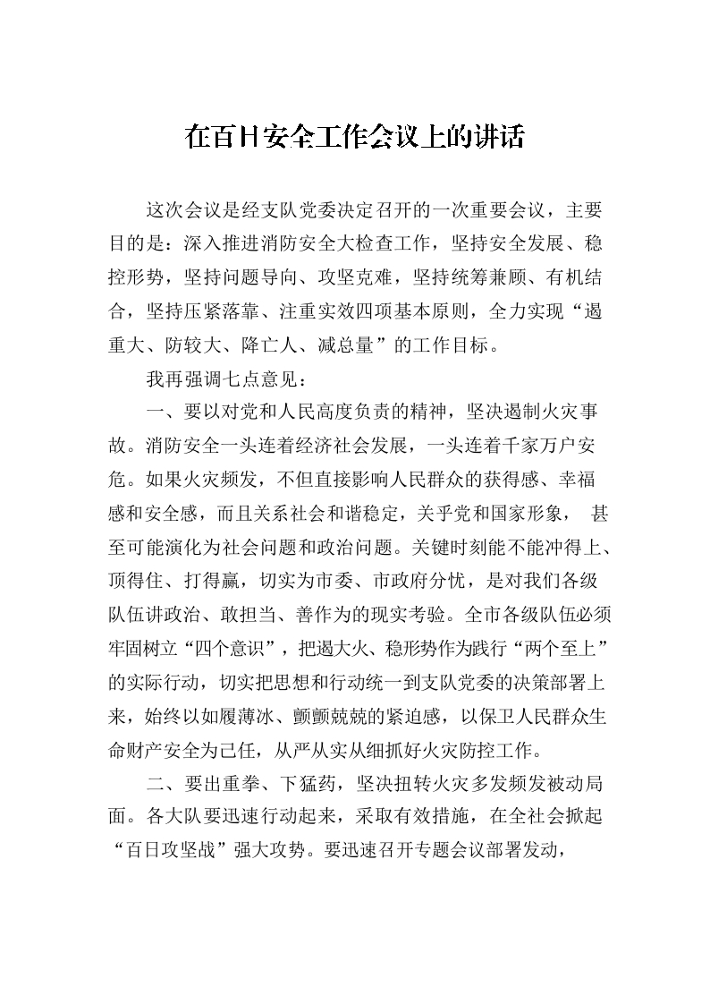 / 在百日安全工作会议上的讲话