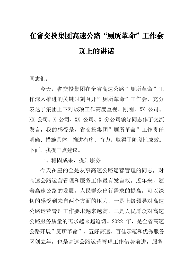/ 在省交投集团高速公路“厕所革命”工作会议上的讲话