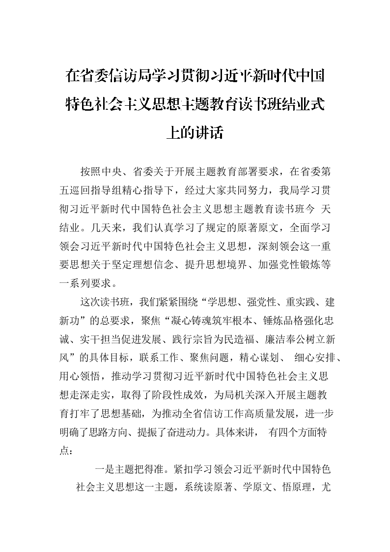/ 在省委信访局学习贯彻习近平新时代中国特色社会主义思想主题教育读书班结业式上的讲话