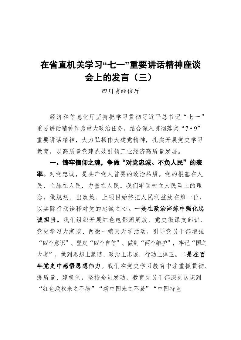/ 在省直机关学习“七一”重要讲话精神座谈会上的发言(三)