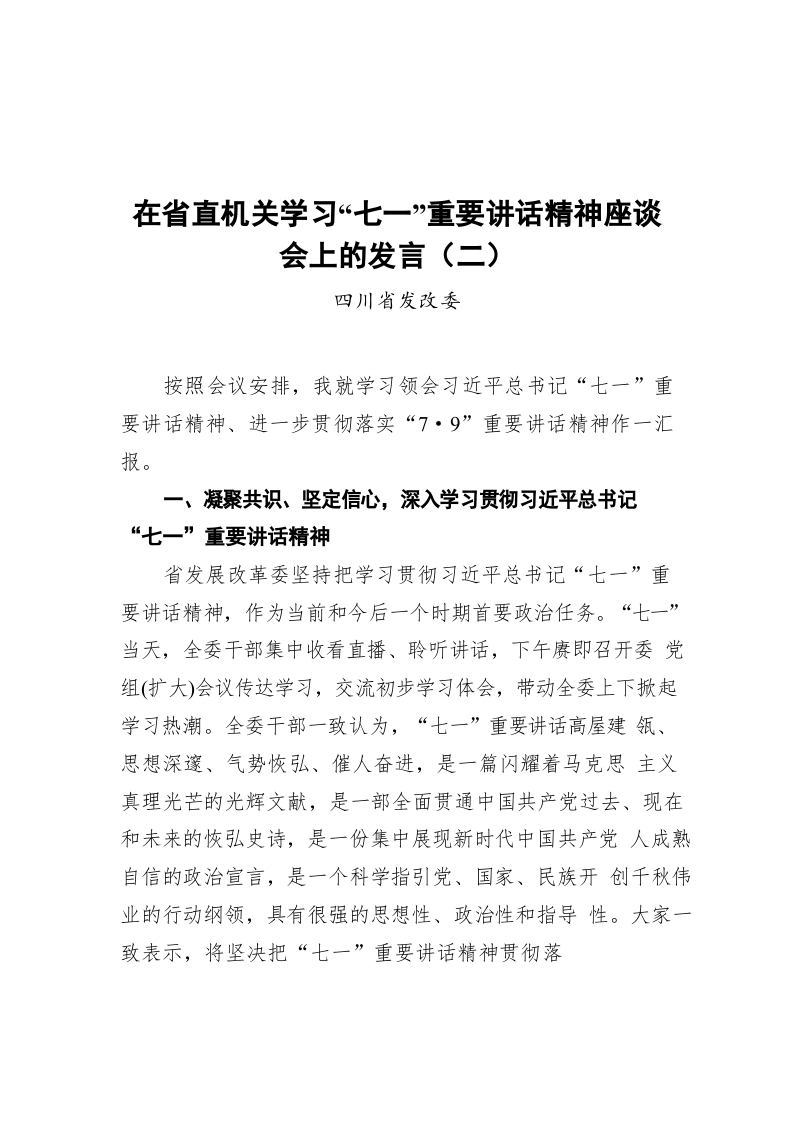 在省直机关学习“七一”重要讲话精神座谈会上的发言(二)