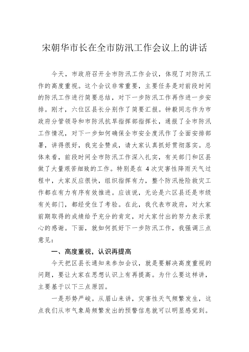 / 宋朝华市长在全市防汛工作会议上的讲话