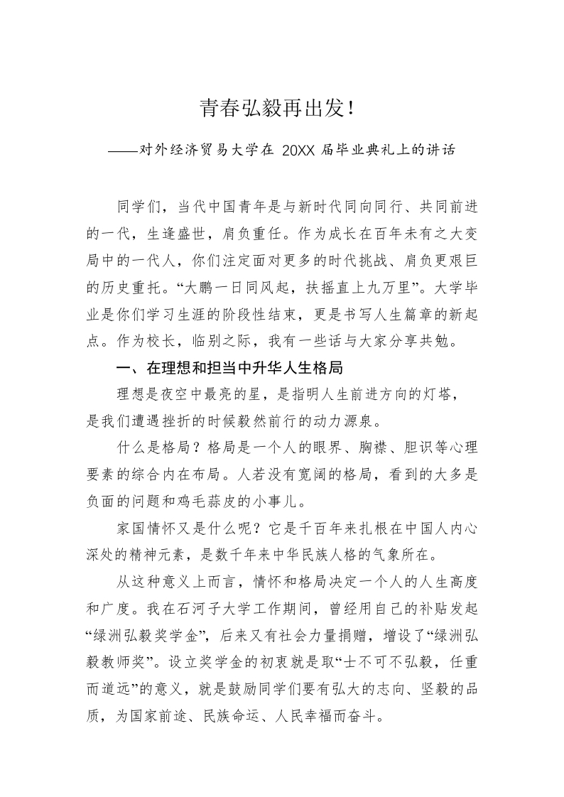 / 对外经济贸易大学在20XX届毕业典礼上的讲话