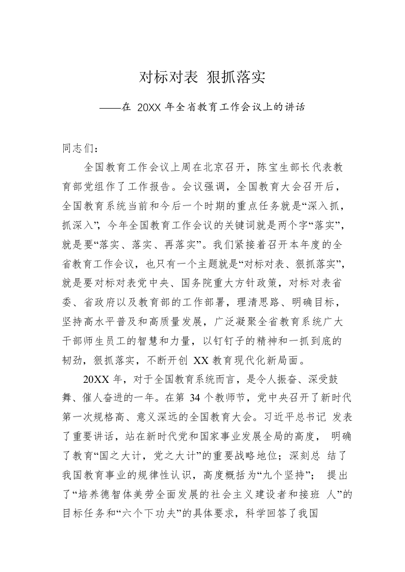 / 对标对表 狠抓落实——在20XX年全省教育工作会议上的讲话