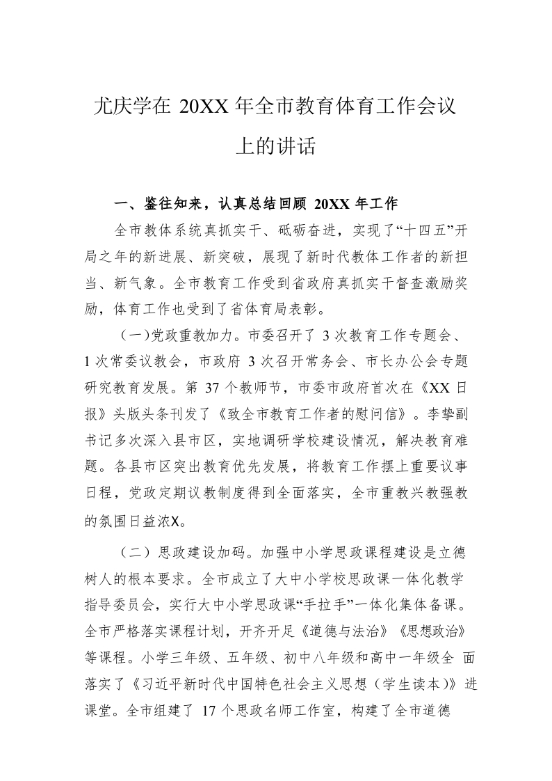 / 尤庆学在2022年全市教育体育工作会议上的讲话(20220310)