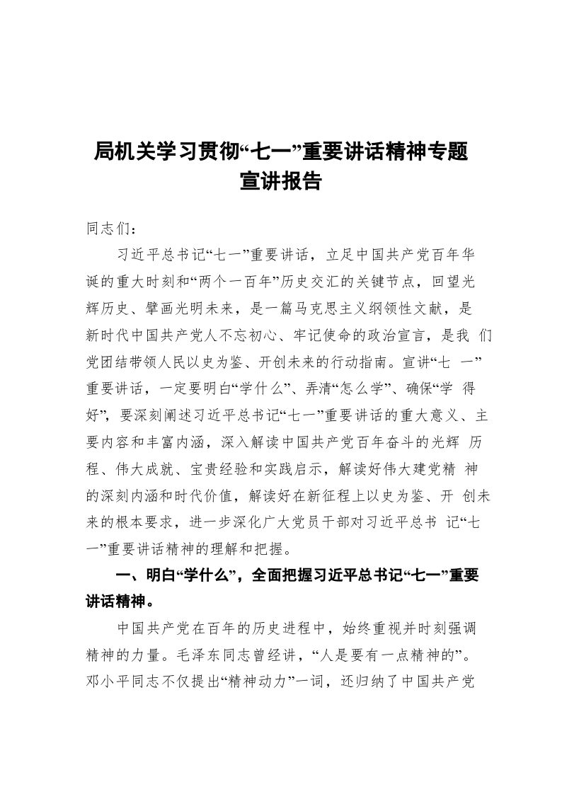 / 局机关学习贯彻“七一”重要讲话精神专题宣讲报告