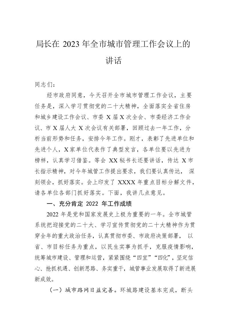 / 局长在2023年全市城市管理工作会议上的讲话