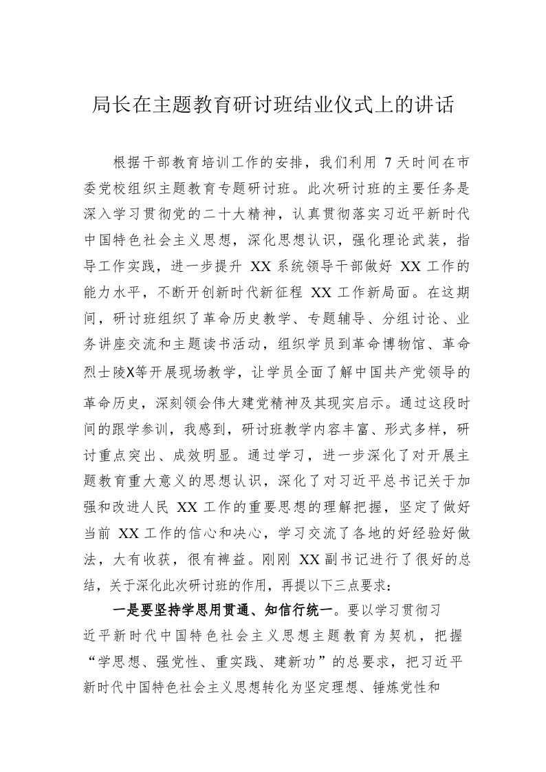 / 局长在主题教育研讨班结业仪式上的讲话