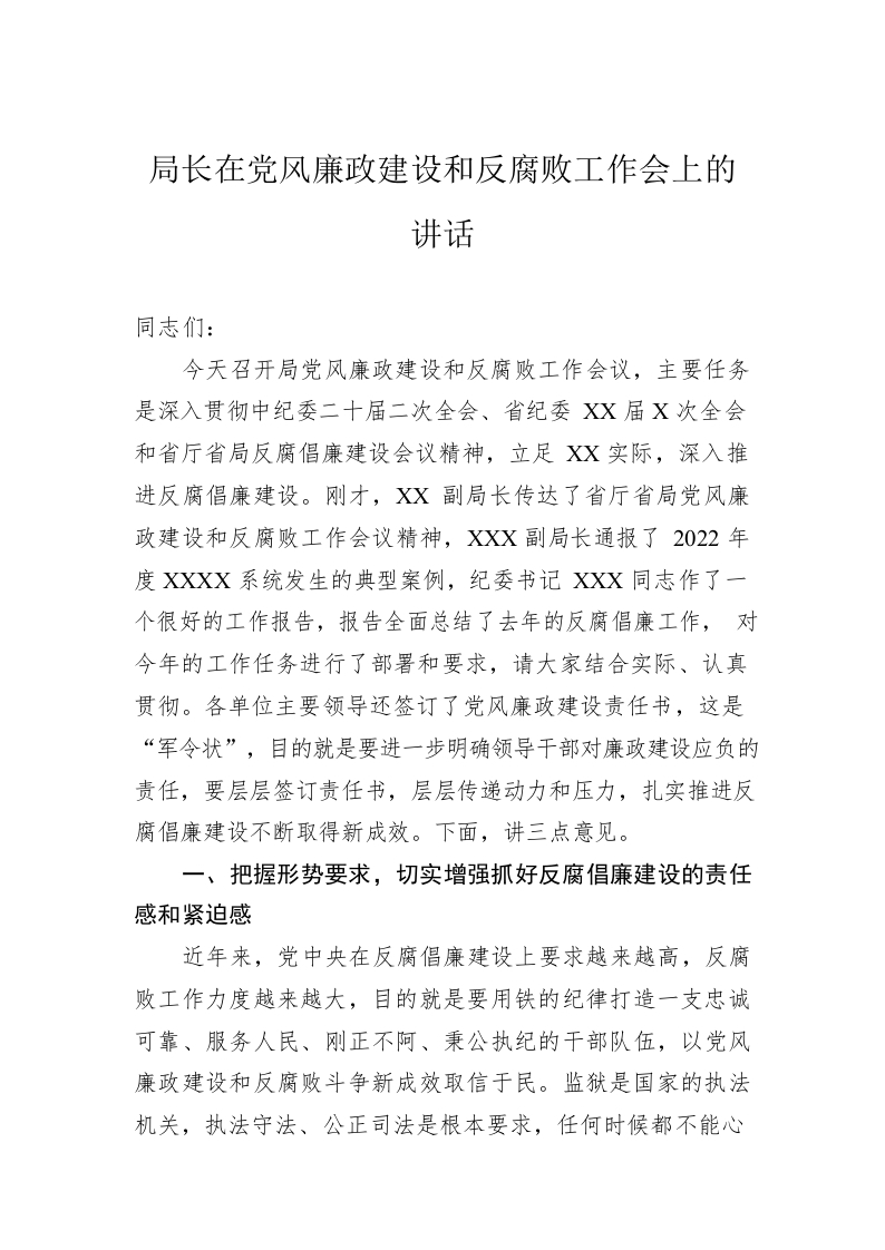 / 局长在党风廉政建设和反腐败工作会上的讲话