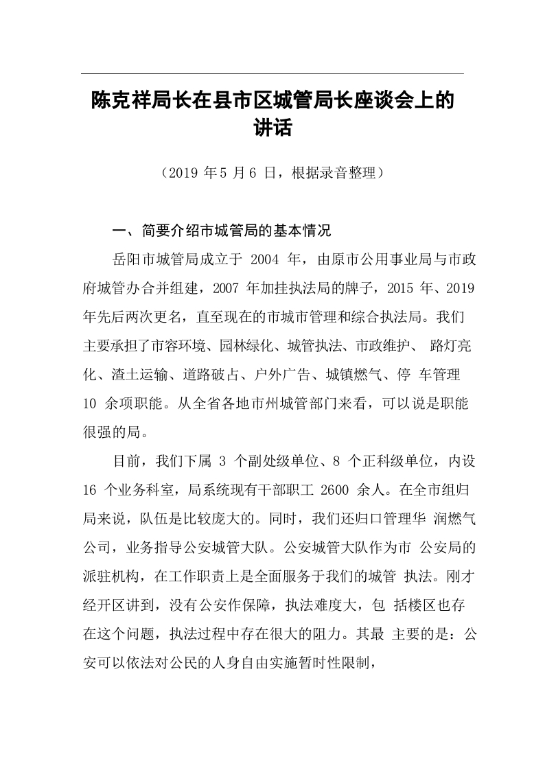 / 局长在县市区城管局长座谈会上的讲话(202190506)