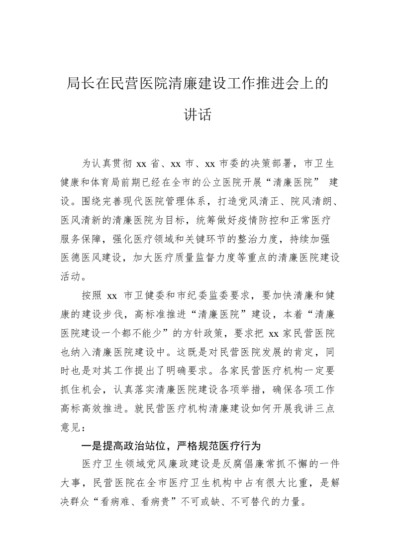 / 局长在民营医院清廉建设工作推进会上的讲话