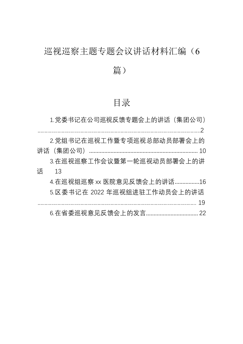 / 巡视巡察主题专题会议讲话材料汇编(6篇)