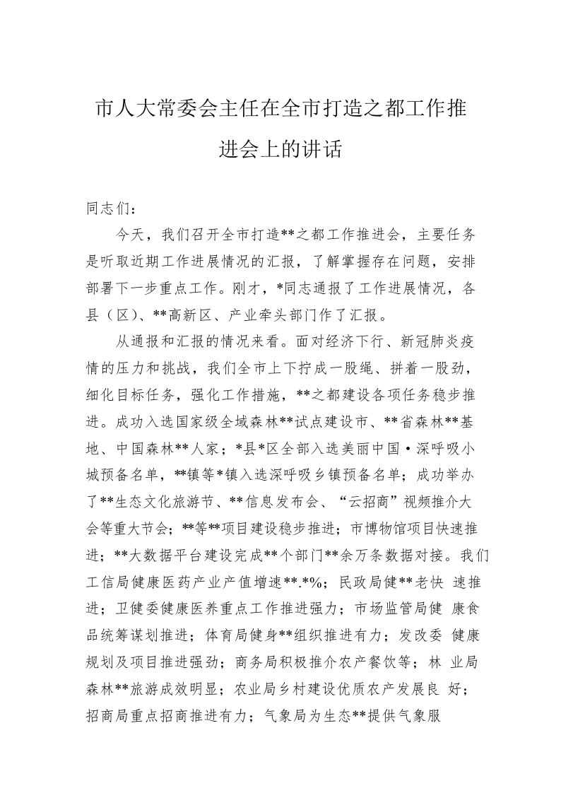 / 市人大常委会主任在全市打造之都工作推进会上的讲话