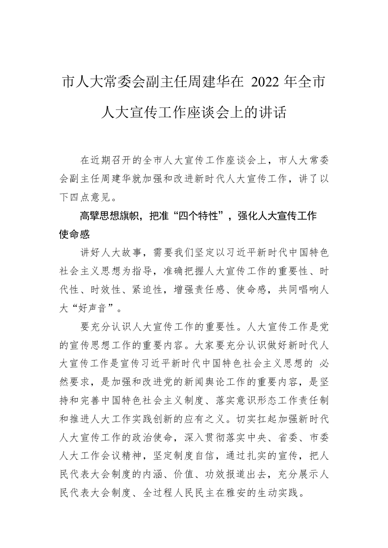 市人大常委会副主任周建华在2022年全市人大宣传工作座谈会上的讲话