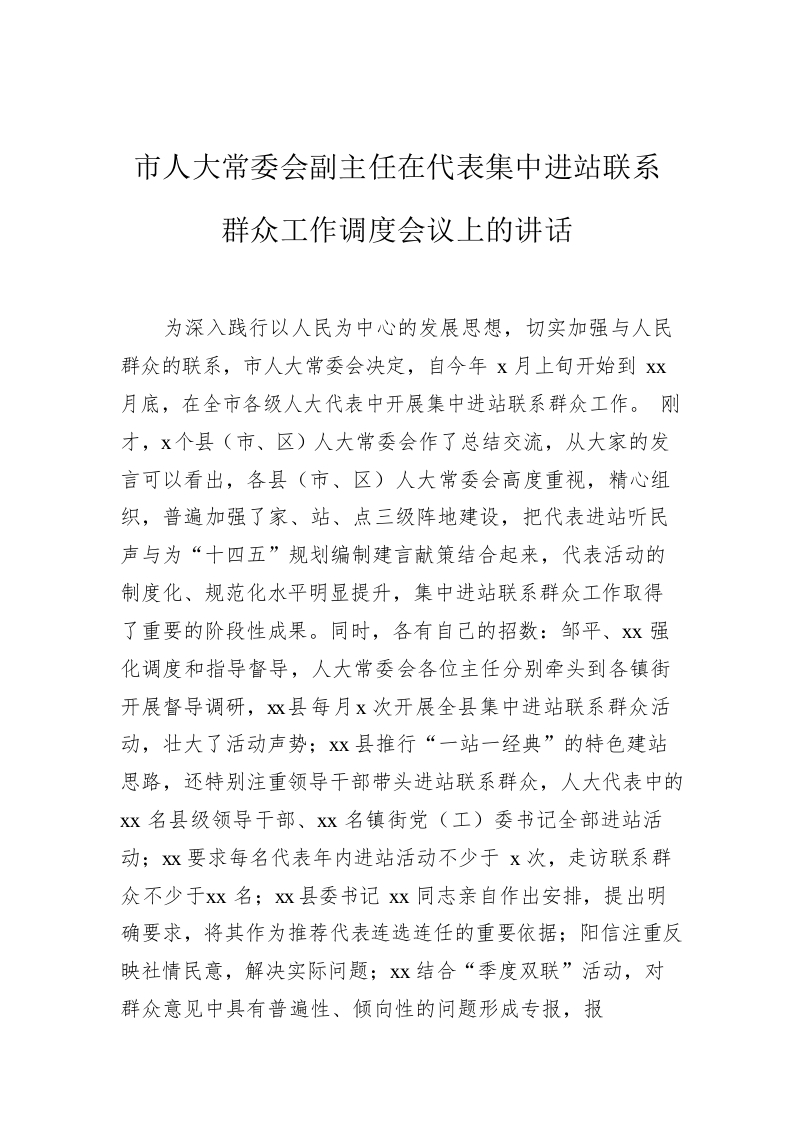 / 市人大常委会副主任在代表集中进站联系群众工作调度会议上的讲话