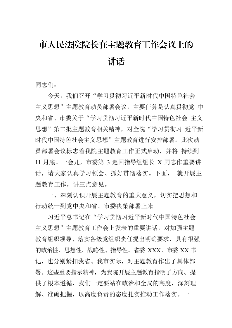 / 市人民法院院长在主题教育工作会议上的讲话