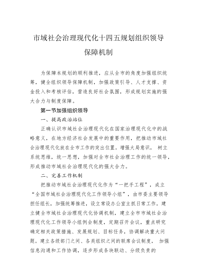 / 市域社会治理现代化十四五规划组织领导保障机制