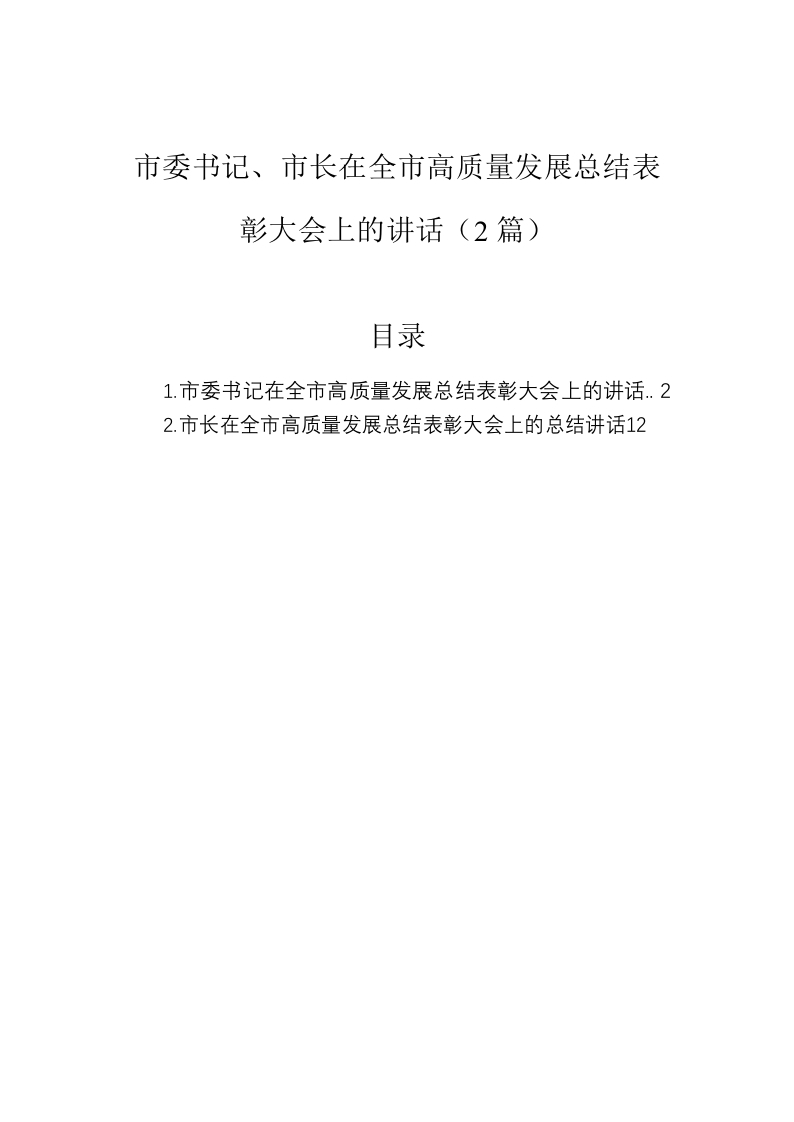 / 市委书记、市长在全市高质量发展总结表彰大会上的讲话(2篇)