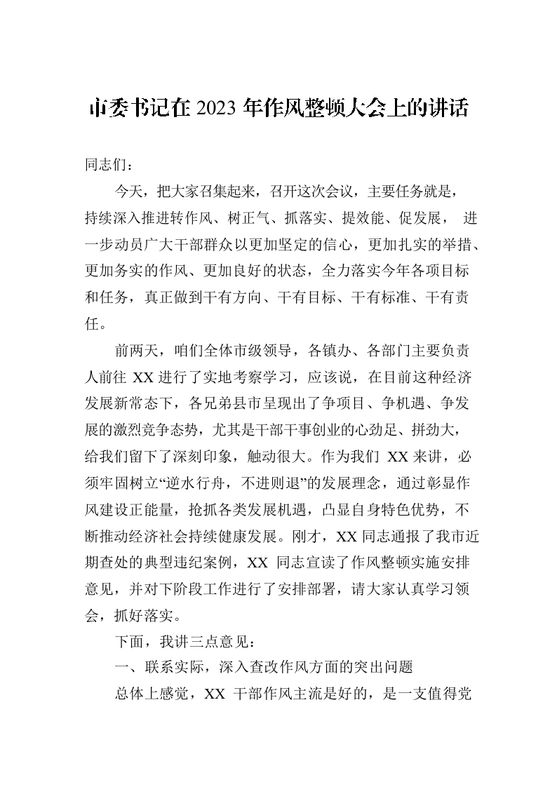 / 市委书记在2023年作风整顿大会上的讲话