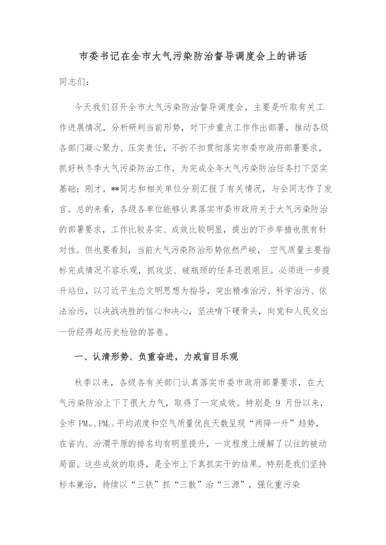 / 市委书记在全市大气污染防治督导调度会上的讲话
