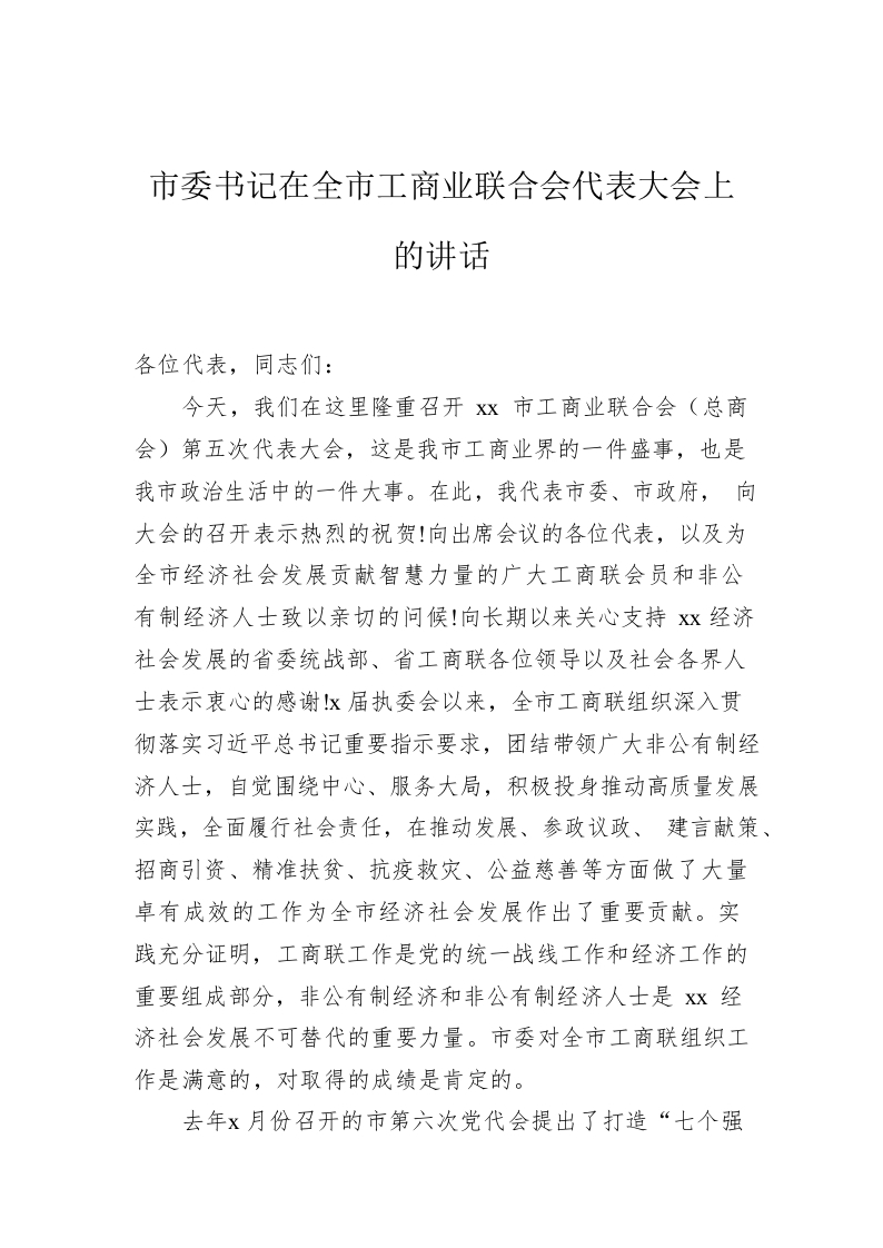 / 市委书记在全市工商业联合会代表大会上的讲话