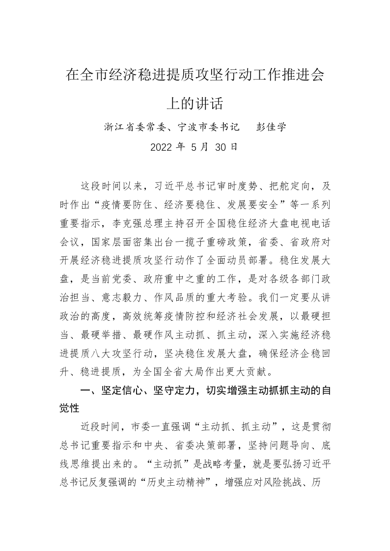/ 市委书记在全市经济稳进提质攻坚行动工作推进会上的讲话(20220530)