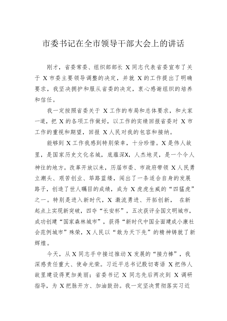 / 市委书记在全市领导干部大会上的讲话