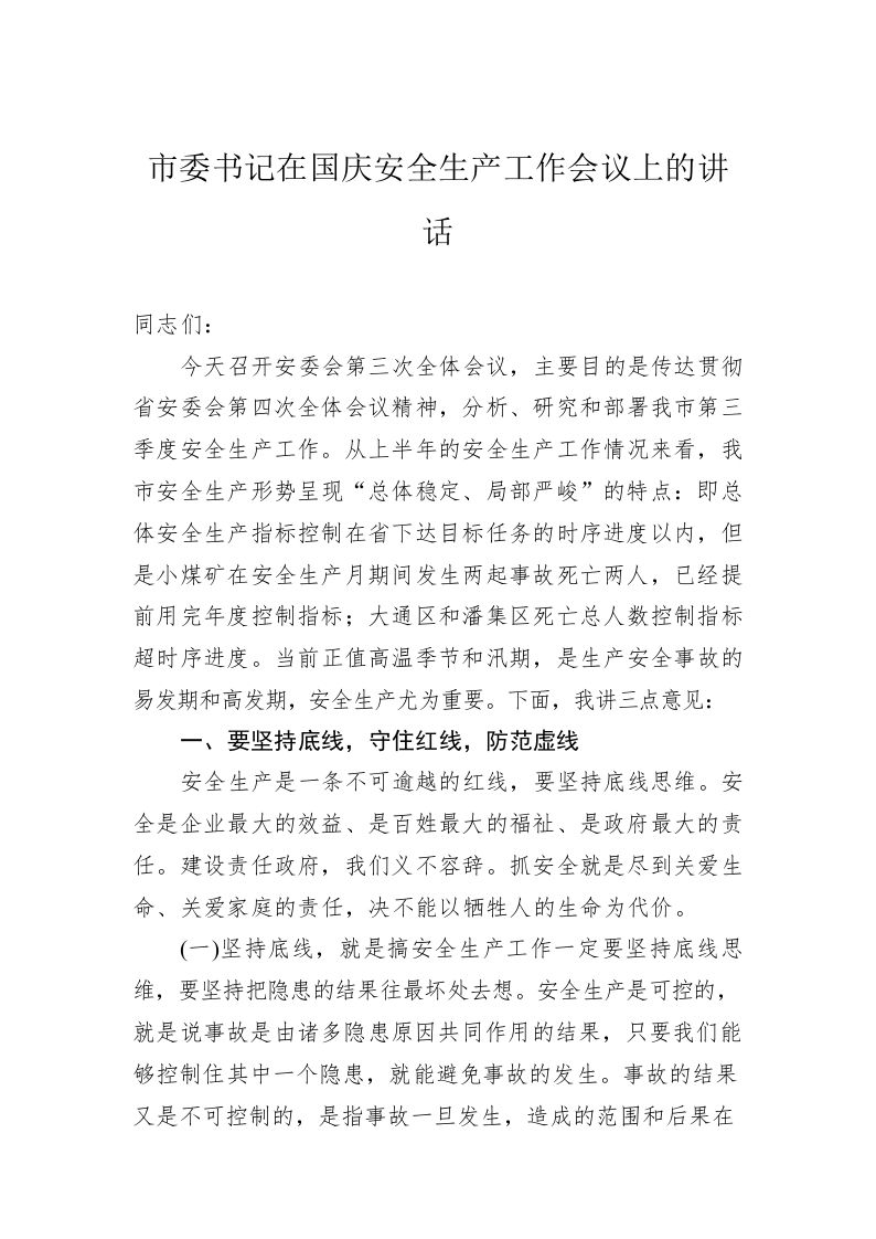 / 市委书记在国庆安全生产工作会议上的讲话 (3)