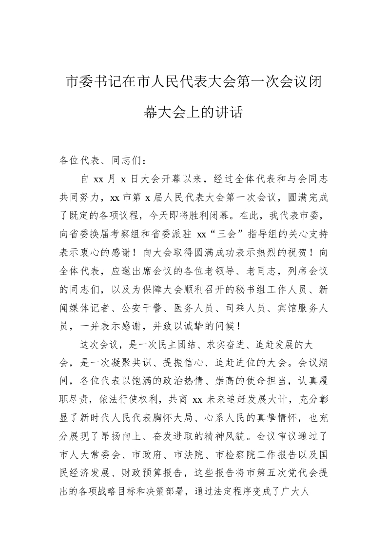 / 市委书记在市人民代表大会第一次会议闭幕大会上的讲话
