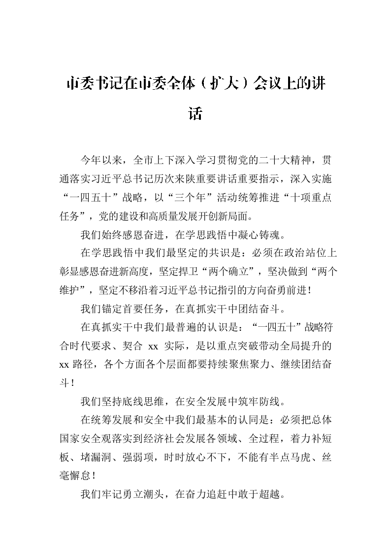 / 市委书记在市委全体(扩大)会议上的讲话