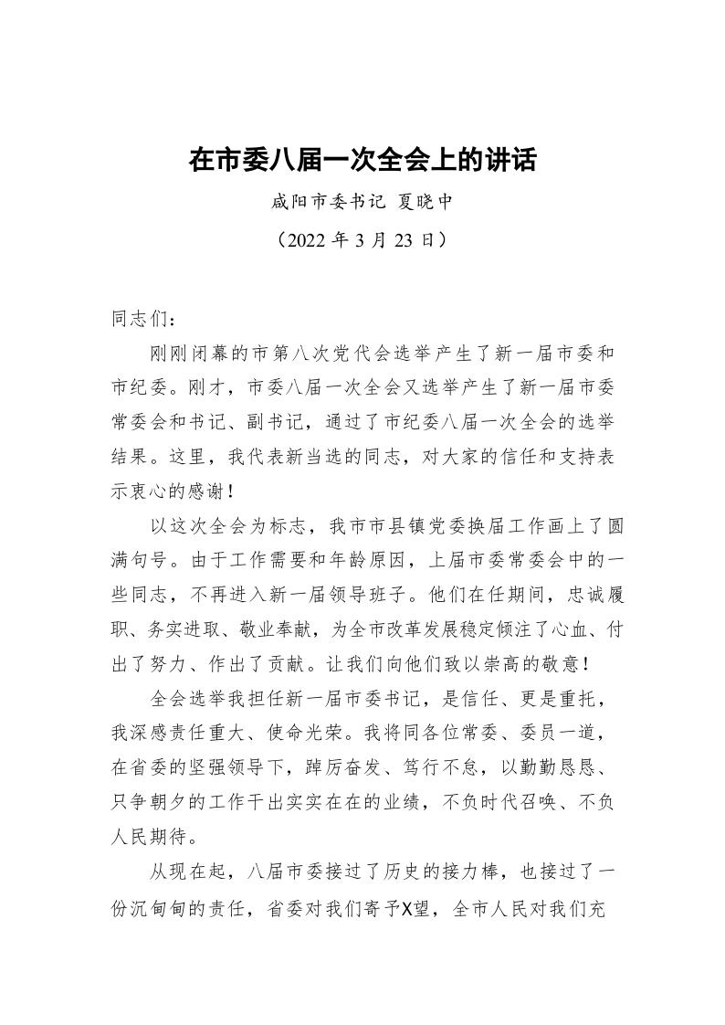 / 市委书记在市委八届一次全会上的讲话(20220323)