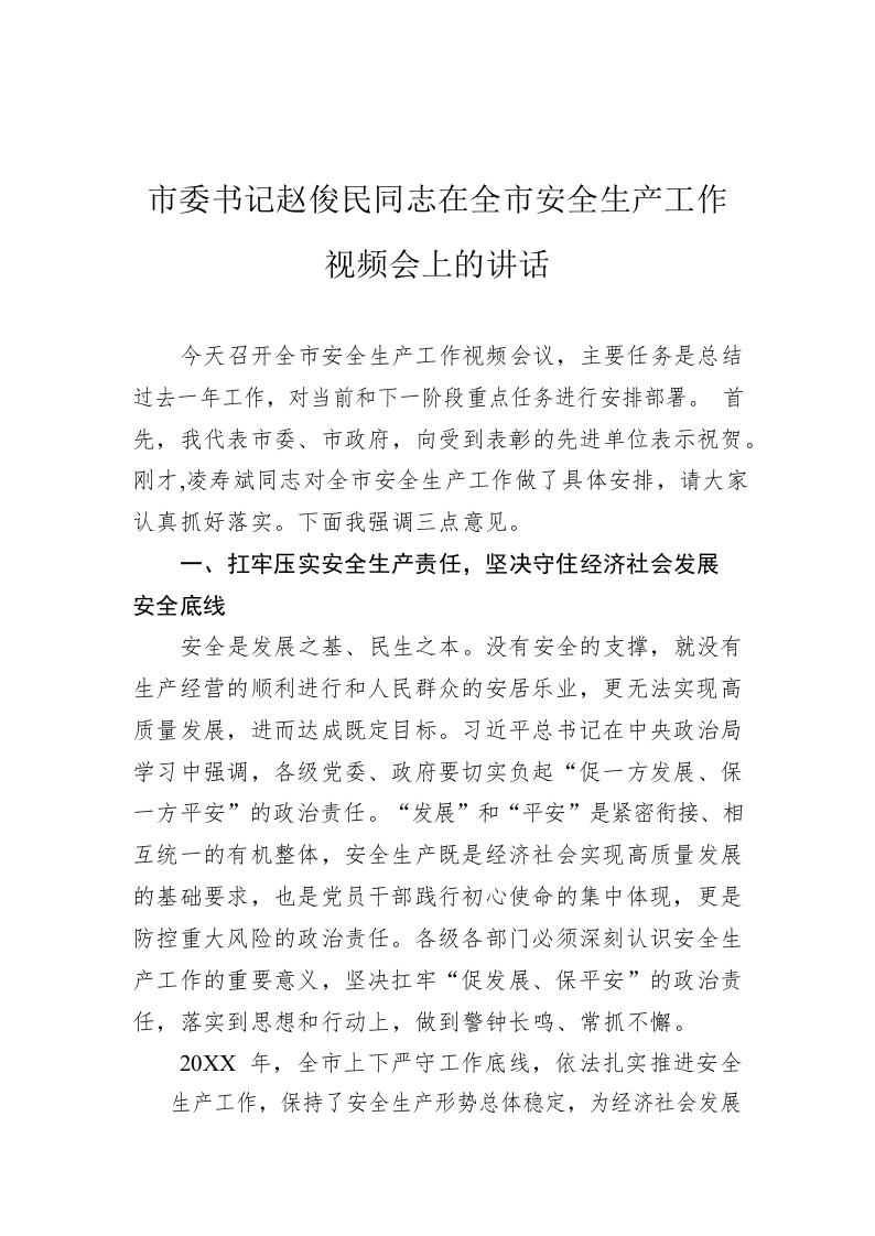 / 市委书记赵俊民同志在全市安全生产工作视频会上的讲话
