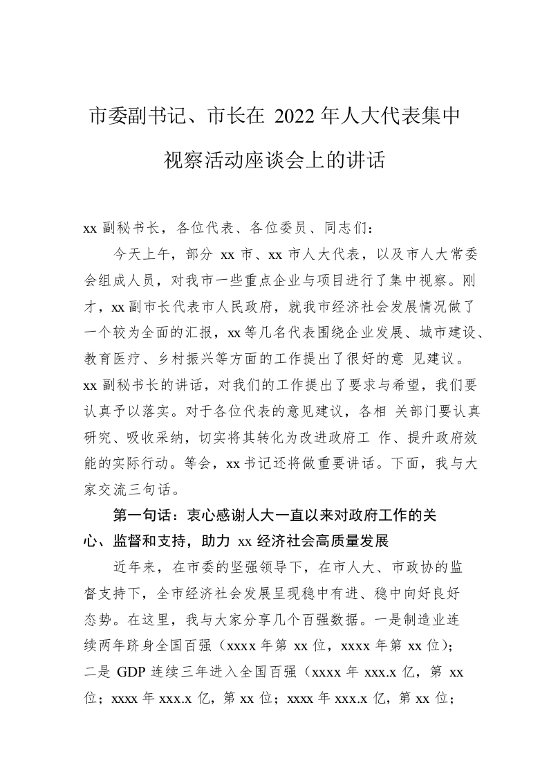 市委副书记、市长在2022年人大代表集中视察活动座谈会上的讲话
