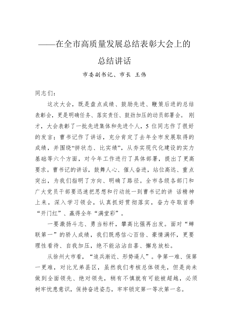 / 市委副书记、市长王伟:在全市高质量发展总结表彰大会上的总结讲话(20230202)