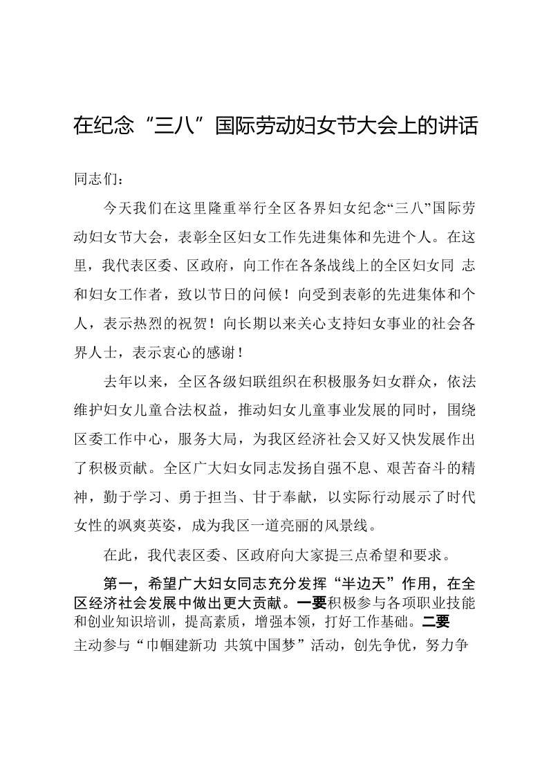 / 纪念妇女节大会讲话