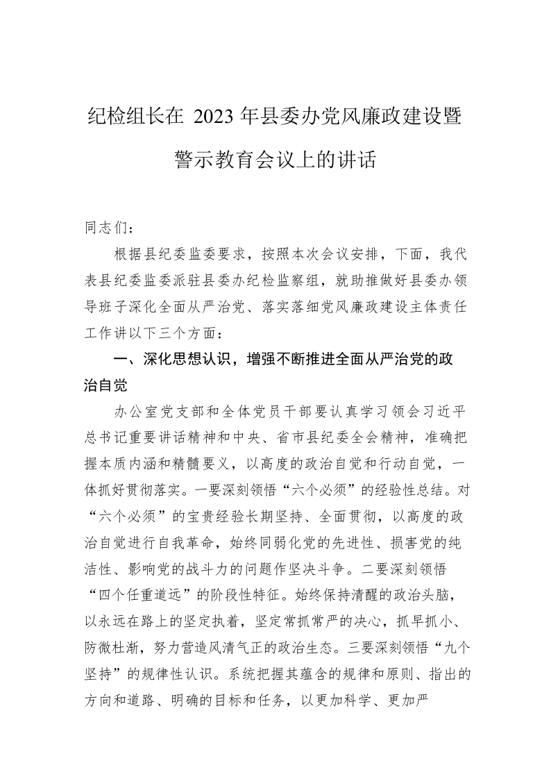 / 纪检组长在2023年县委办党风廉政建设暨警示教育会议上的讲话