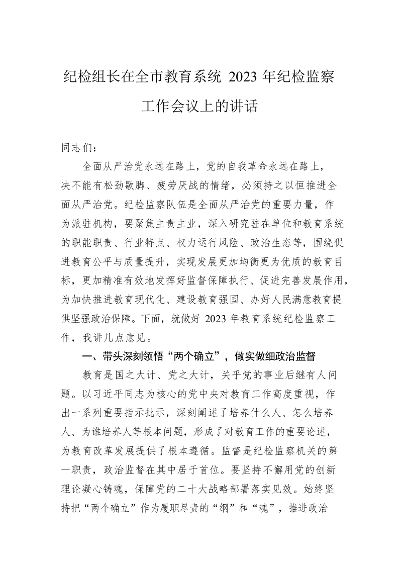 / 纪检组长在全市教育系统2023年纪检监察工作会议上的讲话