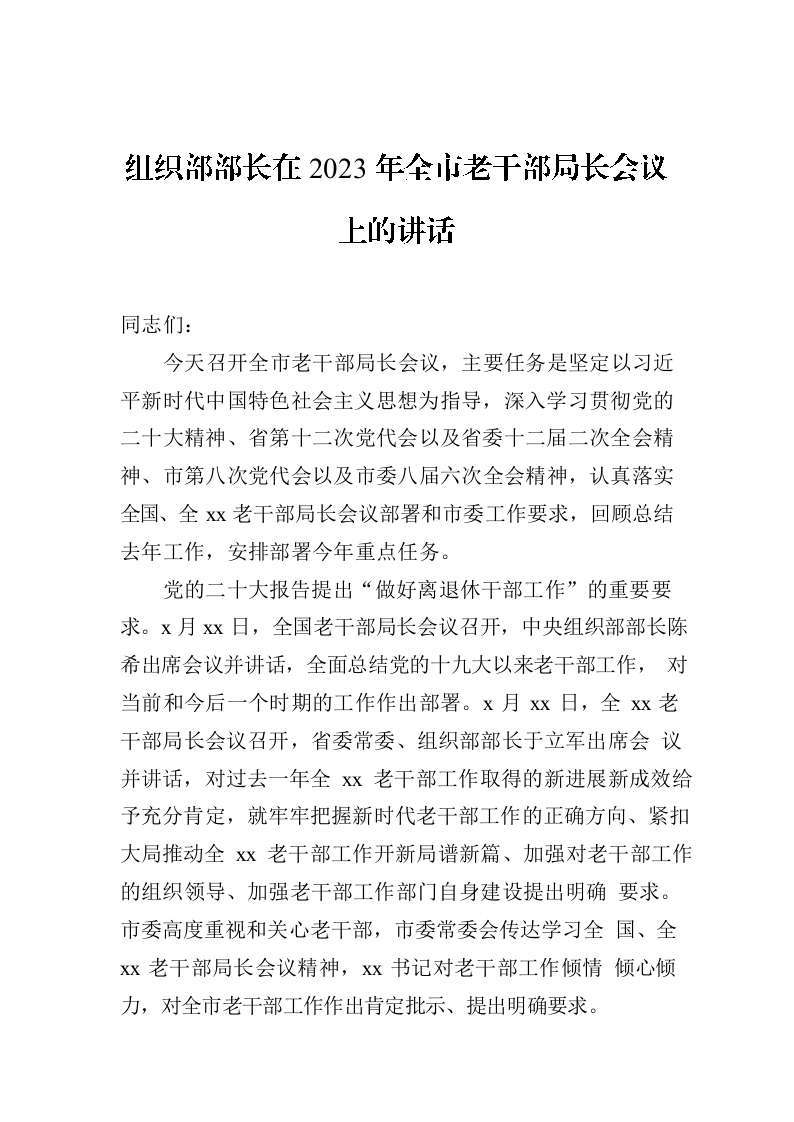 / 组织部部长在2023年全市老干部局长会议上的讲话