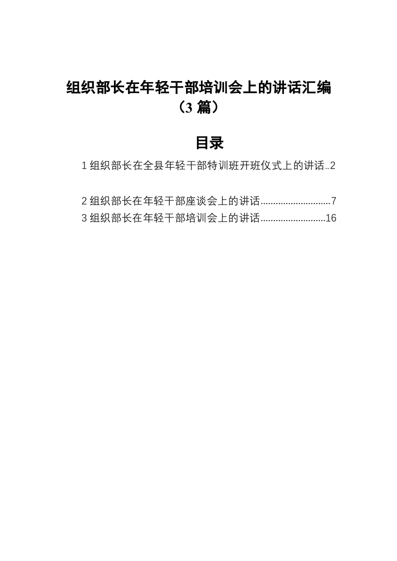 / 组织部长在年轻干部培训会上的讲话汇编(3篇)