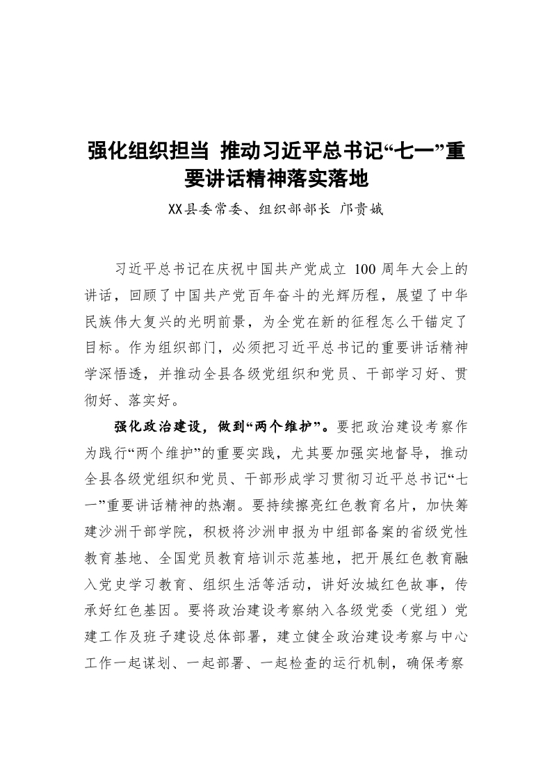 组织部长谈:强化组织担当 推动习近平总书记“七一”重要讲话精神落实落地