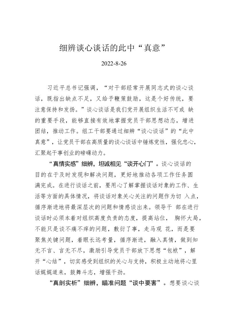 / 细辨谈心谈话的此中“真意”